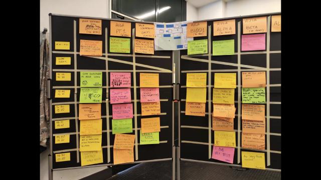 While wandering around my old university halls, I stumbled upon some people from QMates (linkedin) who just took an empty lecture room as hostage and started doing the bank kata on the small desks used by students.